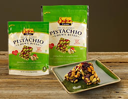 Pistachio Chewy Bites are the ideal healthy snack for people on the go. The 100% all natural pistachio and cranberry snack bars are individually wrapped and contain antioxidant-rich cranberries and nutrient- packed pistachios, providing a powerful and smart snack. Boasting protein, fiber, potassium and antioxidants, Pistachio Chewy Bites are a delicious pick-me-up that promote whole body health.