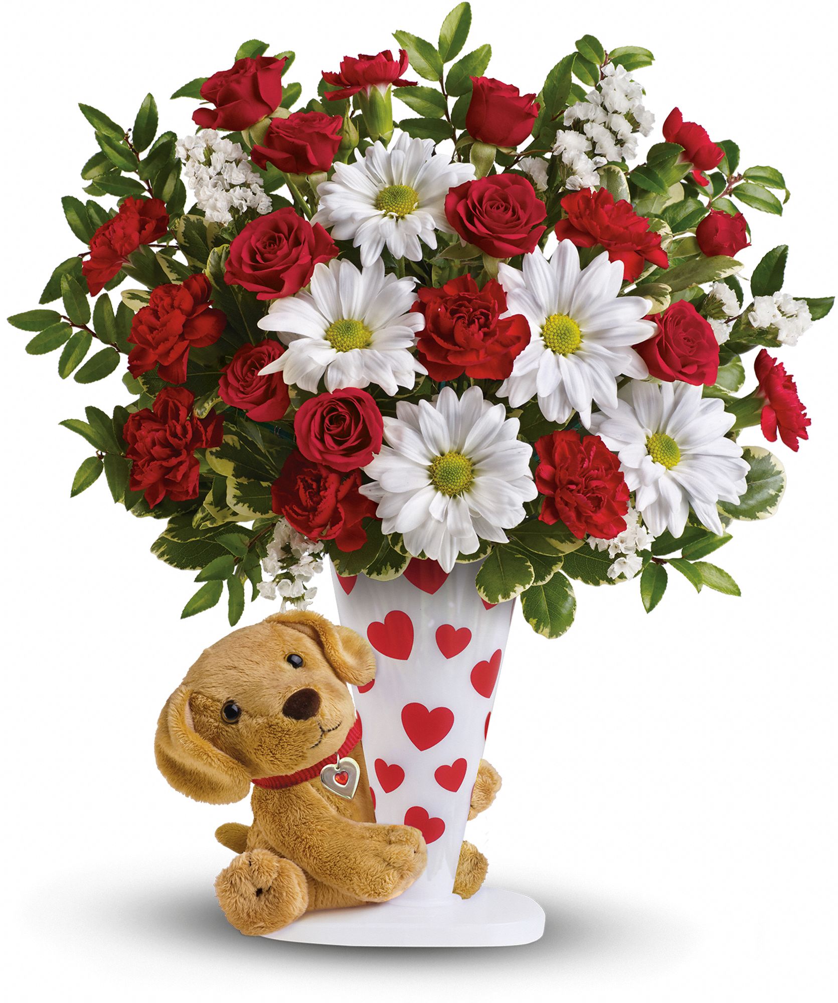 - Teleflora’s Sweet Embrace Bouquet with a sparkling heart bracelet